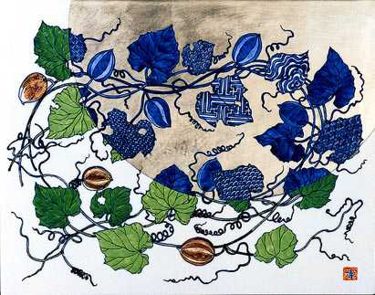 烏瓜 釉裏彩上絵陶画