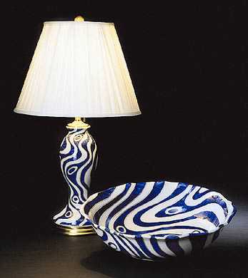 Lamp with design of a stream painted in the underglaze blue and