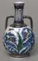 イズニーク模様の扁瓶です。扁瓶の形は、ろくろで引いた後、板で叩いてへこませています。▲