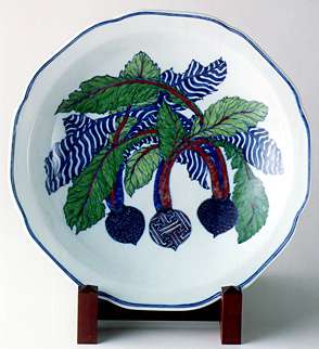 →ceramics sitemap →陶芸の里を訪ねて 内田理奈インタビュー →『色磁器 釉裏の華 広瀬典丈・広瀬さちよ作品集』page1 →page 2 →page 3 →展示会の記録 ←ギャラリー01 ←02 →03 →04 →05 →06 →07 →4 →5 →6 ▲ contents |銀・釉裏彩烏瓜図壺|染付褐釉金銀彩ランプ |染付・釉裏彩・銀彩 組食器|陶画(苗代苺)|釉裏彩苗代苺図鉢 |釉裏彩蕪図大皿|染付銀彩流水文長皿|金・釉裏紅流水鯉図大皿 |釉裏彩亀図八角皿|染付葉脈文大鉢|コラボレーションの花 |釉裏彩観世水文花器|釉裏彩亀図長皿|銹花金彩 流水文花器 |自由奔放な華|染付銀彩流水文花器|新古典的ともいえる造形 |釉裏彩流し文様花器|染付・えんじ波文様長皿|染付銀彩蔦図大皿 |ランプ・花器・長角皿|染付葉脈文花器