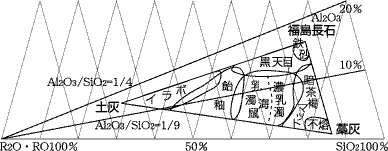 →4珪酸塩ガラスの構造 →5釉式座標による灰釉性状図